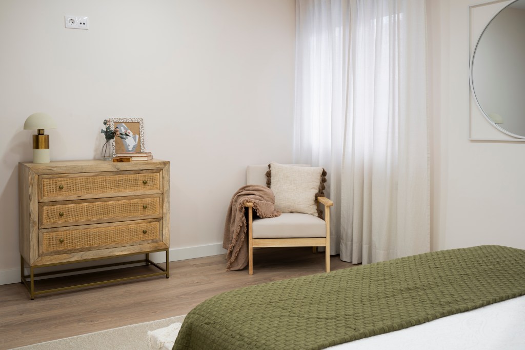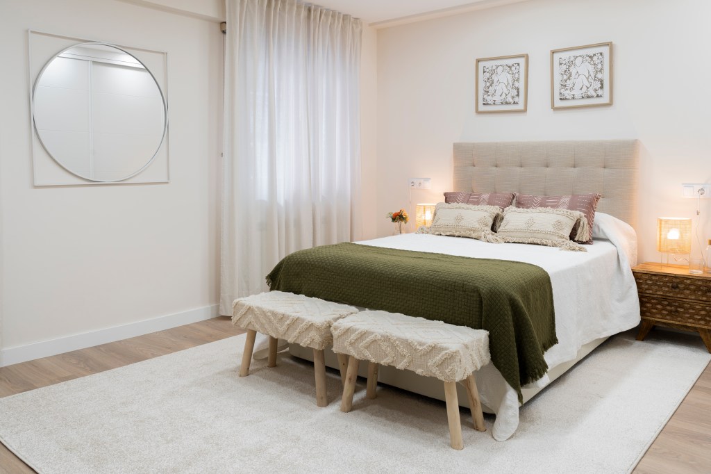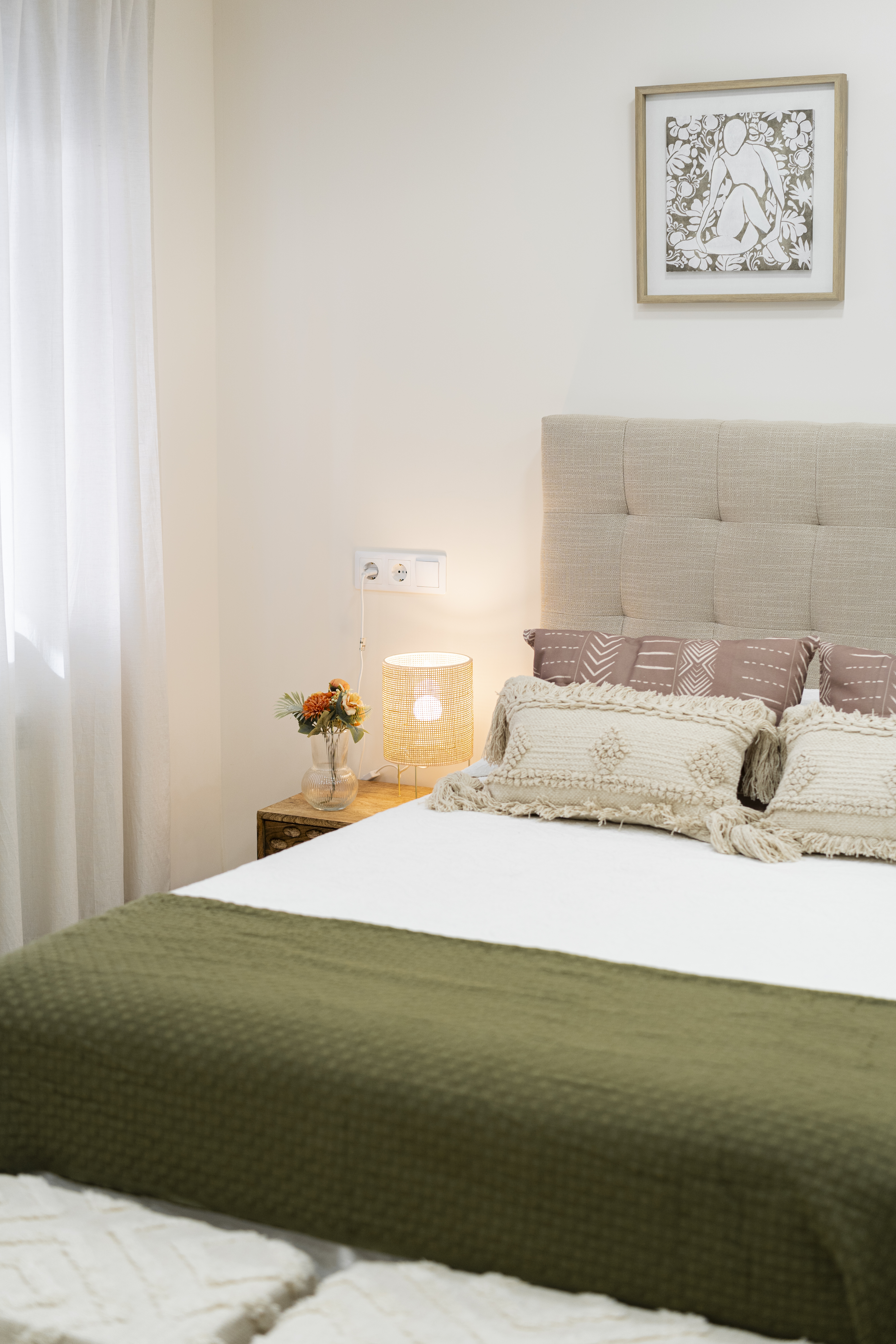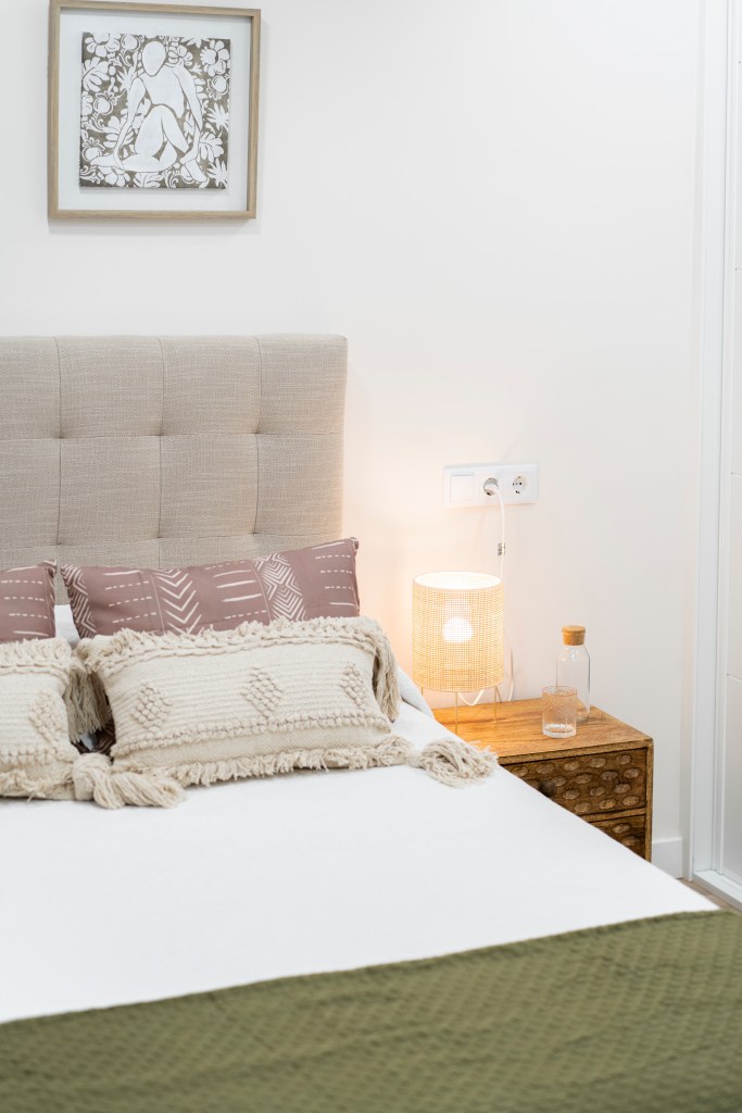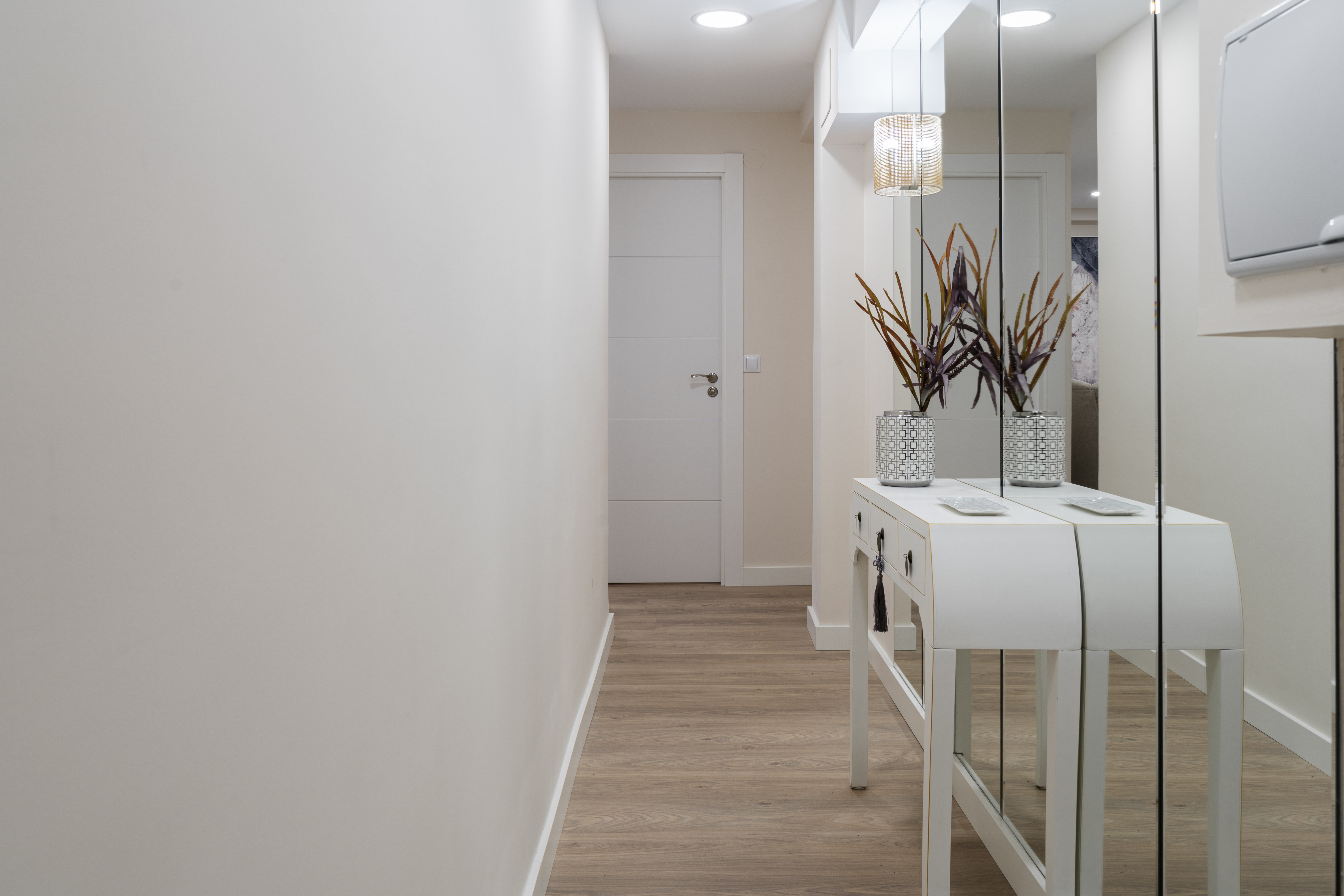 Cambio total. Este piso es una primera altura, interior y retranqueado de la fachada principal, cuenta con una orientación norte, por lo que es es escaso de luz natural. Además, se distribuía a lo largo de un largo pasillo en forma de L en dos tramos de 5 y 8 metros. Cambiando la configuración de las habitaciones y ganando espacios más abiertos, hemos conseguido manejar la luz natural y reforzar los puntos más interiores con una agradable iluminación.