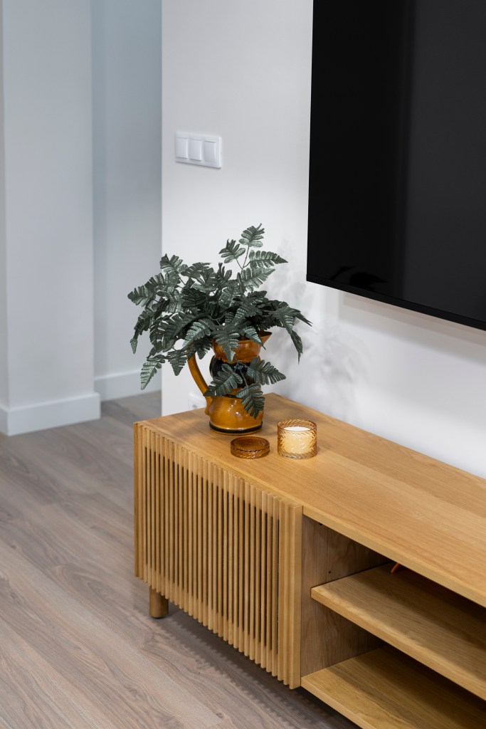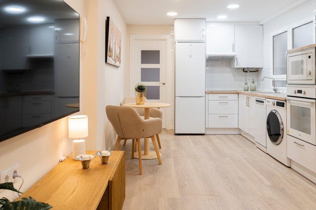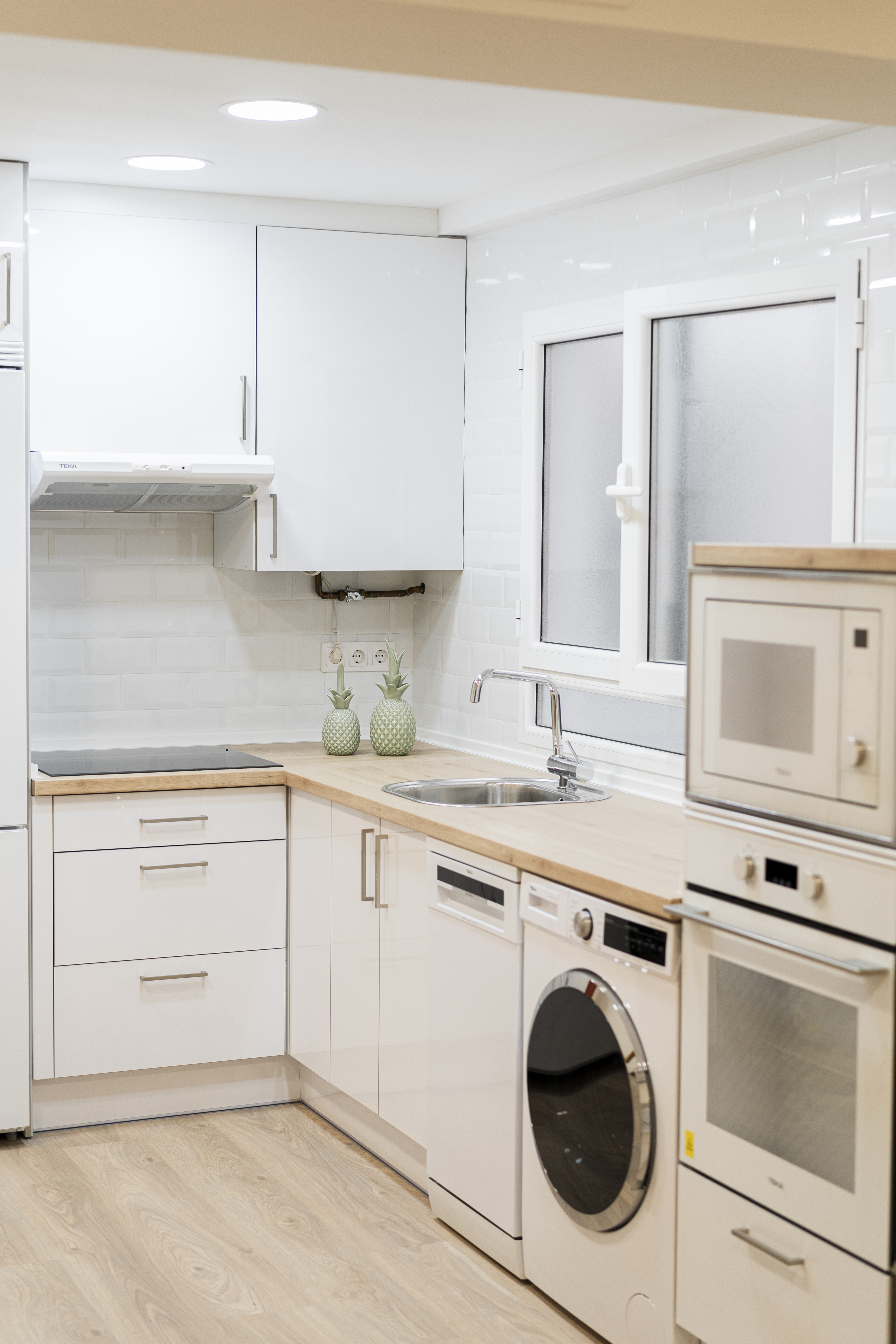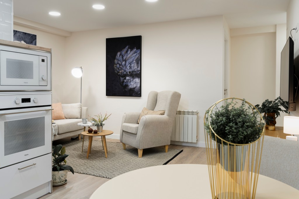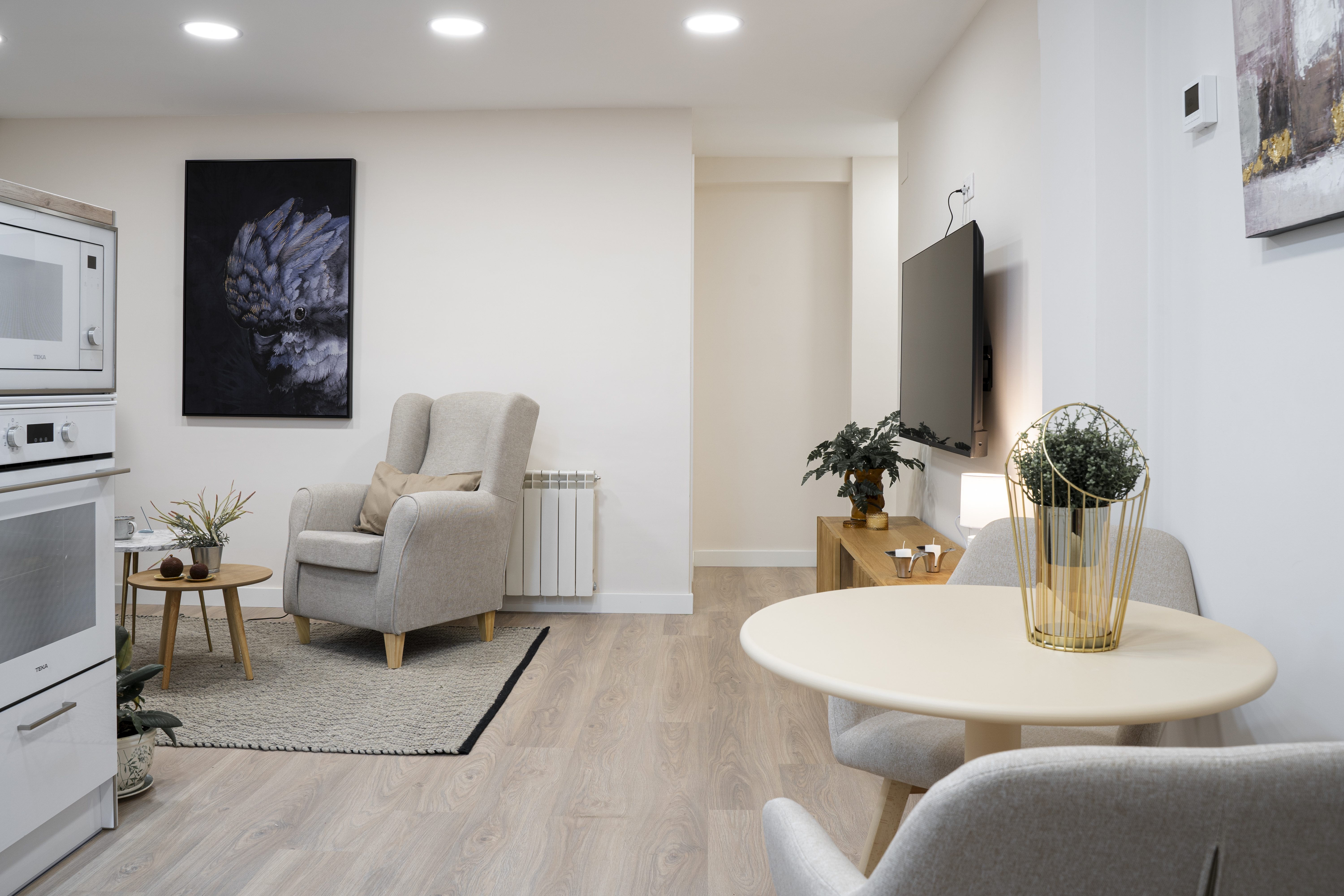 Cambio total. Este piso es una primera altura, interior y retranqueado de la fachada principal, cuenta con una orientación norte, por lo que es es escaso de luz natural. Además, se distribuía a lo largo de un largo pasillo en forma de L en dos tramos de 5 y 8 metros. Cambiando la configuración de las habitaciones y ganando espacios más abiertos, hemos conseguido manejar la luz natural y reforzar los puntos más interiores con una agradable iluminación.