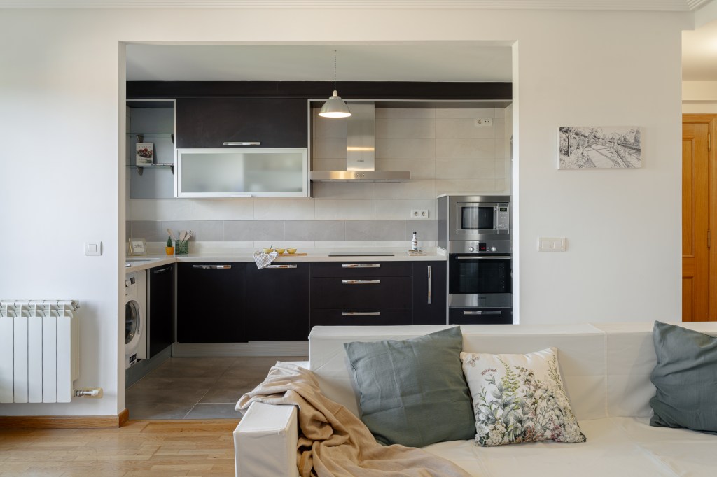El corazón del hogar es un espacioso salón que se abre a una cocina equipada y moderna, donde la posibilidad de un cerramiento te permite también personalizar el ambiente a tu gusto. Las vistas despejadas desde la terraza del salón conectan con la naturaleza.